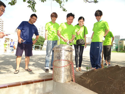 7月12日にタイムカプセル開封実行委員会メンバーで、掘り起しを実施しました。 タイムカプセル外側に書いた文字も読めるほど埋設状態は良好で、10年たっているとは思えないほど良好でした。 7月26日の開封式本番に、埋設した手紙をお返しできるよう引き続き準備を進めております。 当日に、お会いできることを楽しみにしております。 ![]() ![]() ![]() ![]() ![]() |